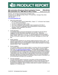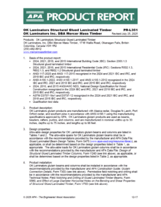 - Glulam beams up to 8 feet deep, with lengths up to 110 feet, subject to shipping logistics.