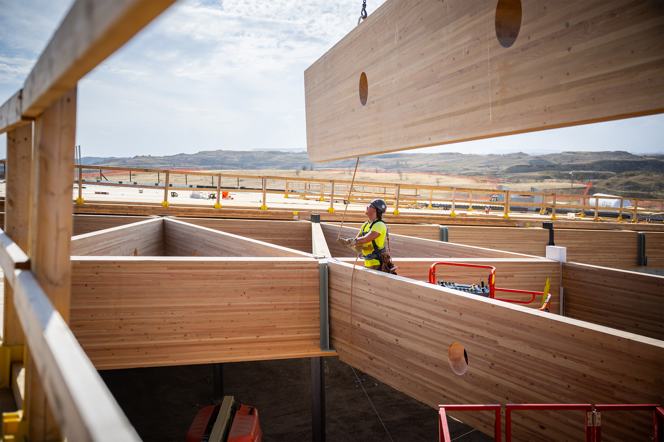 In partnership with general contractor JE Dunn, Mercer Mass Timber provided mass timber design-assist services, material supply, and coordination and logistics, including delivery of the project’s signature roof structure.